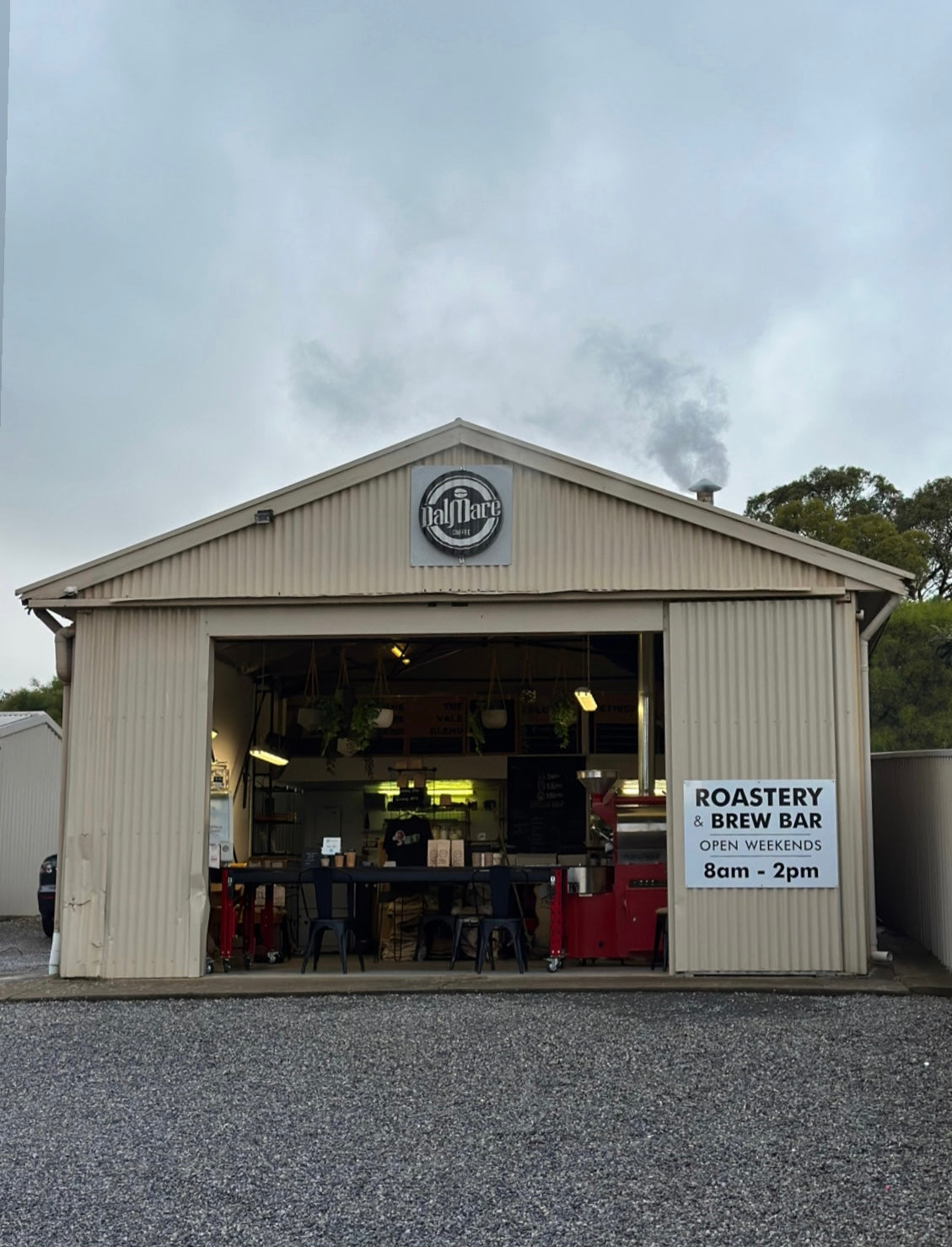 Tucked inside a rustic shed in the heart of McLaren Vale, Dal Mare Coffee is a small-batch coffee roastery with a big love for great coffee. You’ll find us at 189 Main Road, where the smell of freshly roasted beans and the hum of our little red coffee roaster invite you in from the street.